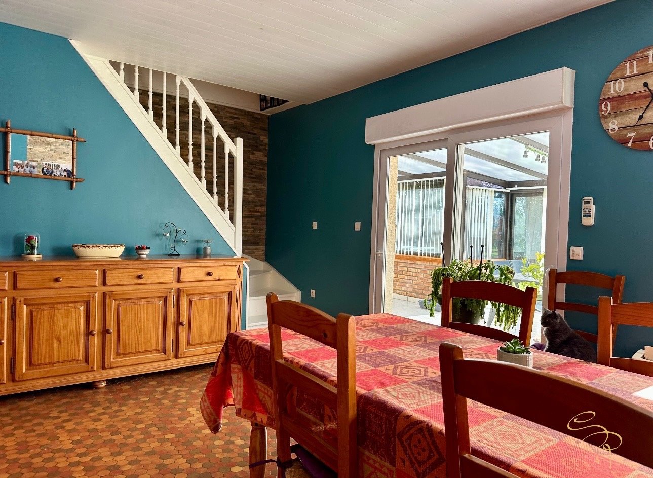 Atout majeur de la maison : une véranda chauffée, véritable pièce de vie supplémentaire, idéale pour profiter d’un espace lumineux toute l’année, en salon, salle à manger ou coin détente.