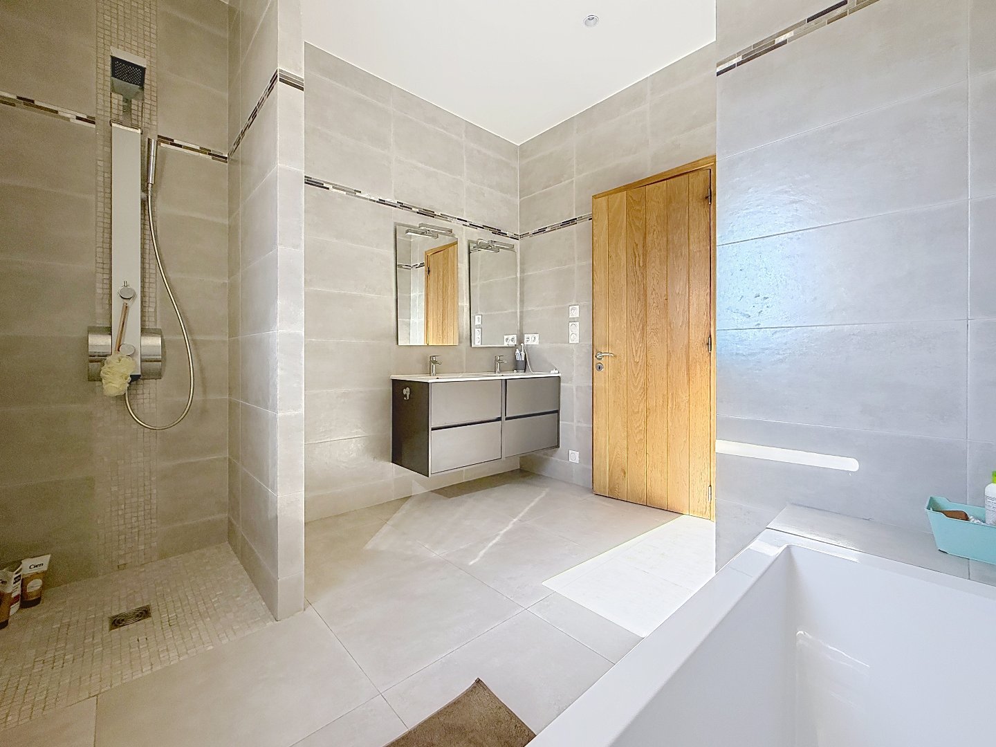 La maison propose une suite parentale de 23 m² avec salle de douche à l’italienne et WC en rez-de-chaussée, alliant confort et intimité. À l’étage, trois chambres supplémentaires, une salle de bain avec douche ainsi qu’un espace bureau viennent compléter l’espace nuit, parfaitement adapté à une vie de famille ou au télétravail.
