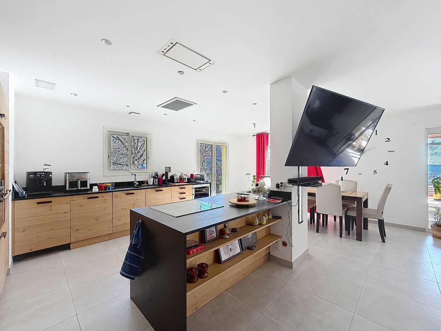 Dès l’entrée, vous serez séduit par un superbe espace de vie d’environ 70 m², baigné de lumière, avec cheminée et cuisine américaine ouverte, le tout prolongé par une vaste terrasse offrant une vue très dégagée sur la vallée et les collines environnantes. Un lieu idéal pour profiter de moments conviviaux en famille ou entre amis.