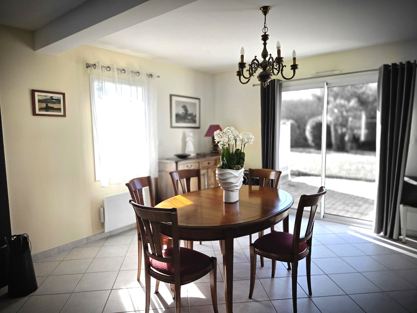 44350 – GUERANDE/LA BAULE. Emplacement idéal, à 3 minutes de l’avenue de Gaulle, du marché, de la gare, des plages de La Baule, et de la cité médiévale de Guérande, cette maison de 2008, entretenue, et optimisée de 127 m² habitables et 141 m² utiles, proche des commodités, vous offre: une entrée, une cuisine aménagée et équipée,