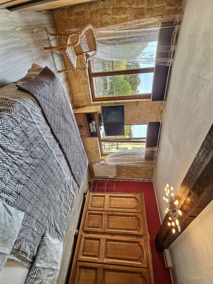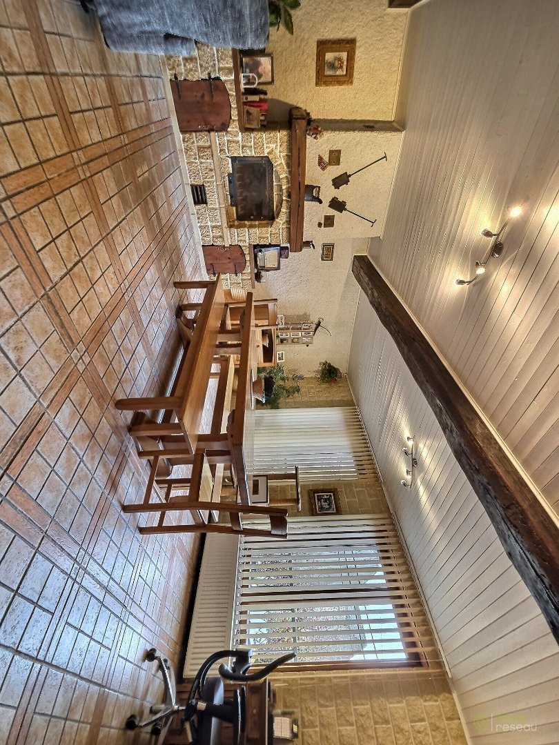 Au rez-de-chaussée, vous profitez d’un séjour chaleureux avec cheminée, d’une cuisine équipée avec four, ainsi que de WC séparés.