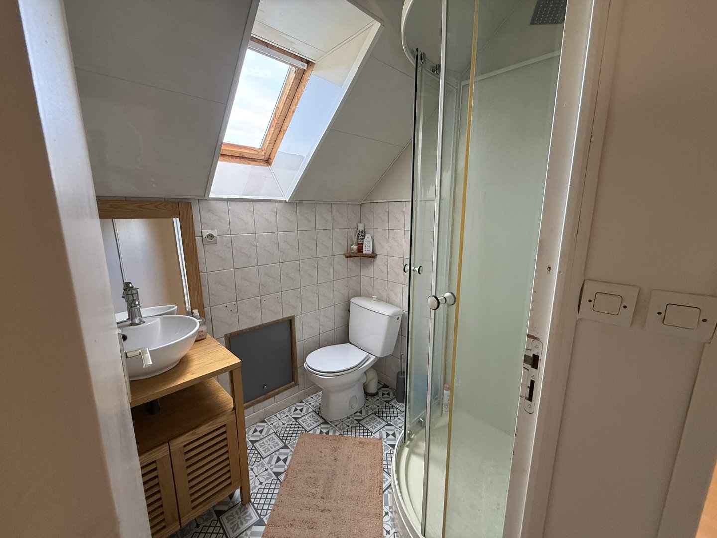 La maison dispose d’une salle de bain et d’une salle d’eau, ainsi que de deux WC et d’un grand cellier.