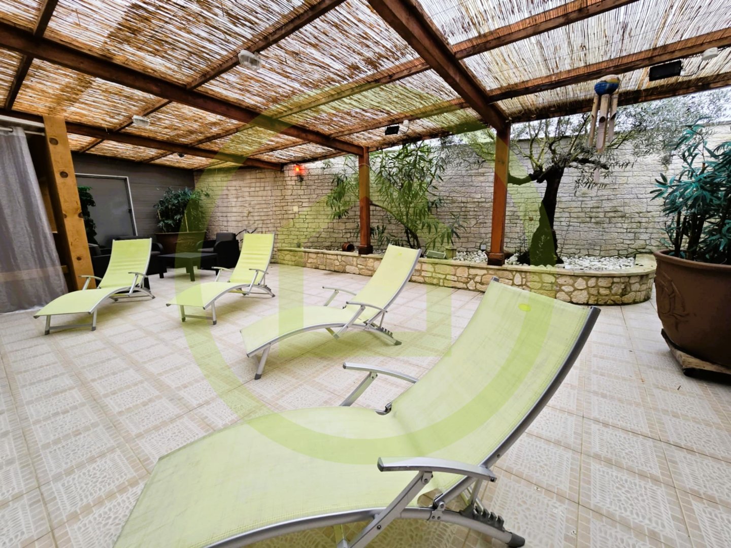 À l’extérieur, une terrasse élégante prolonge les espaces de vie vers un jardin paysager, propice au calme et à la sérénité.