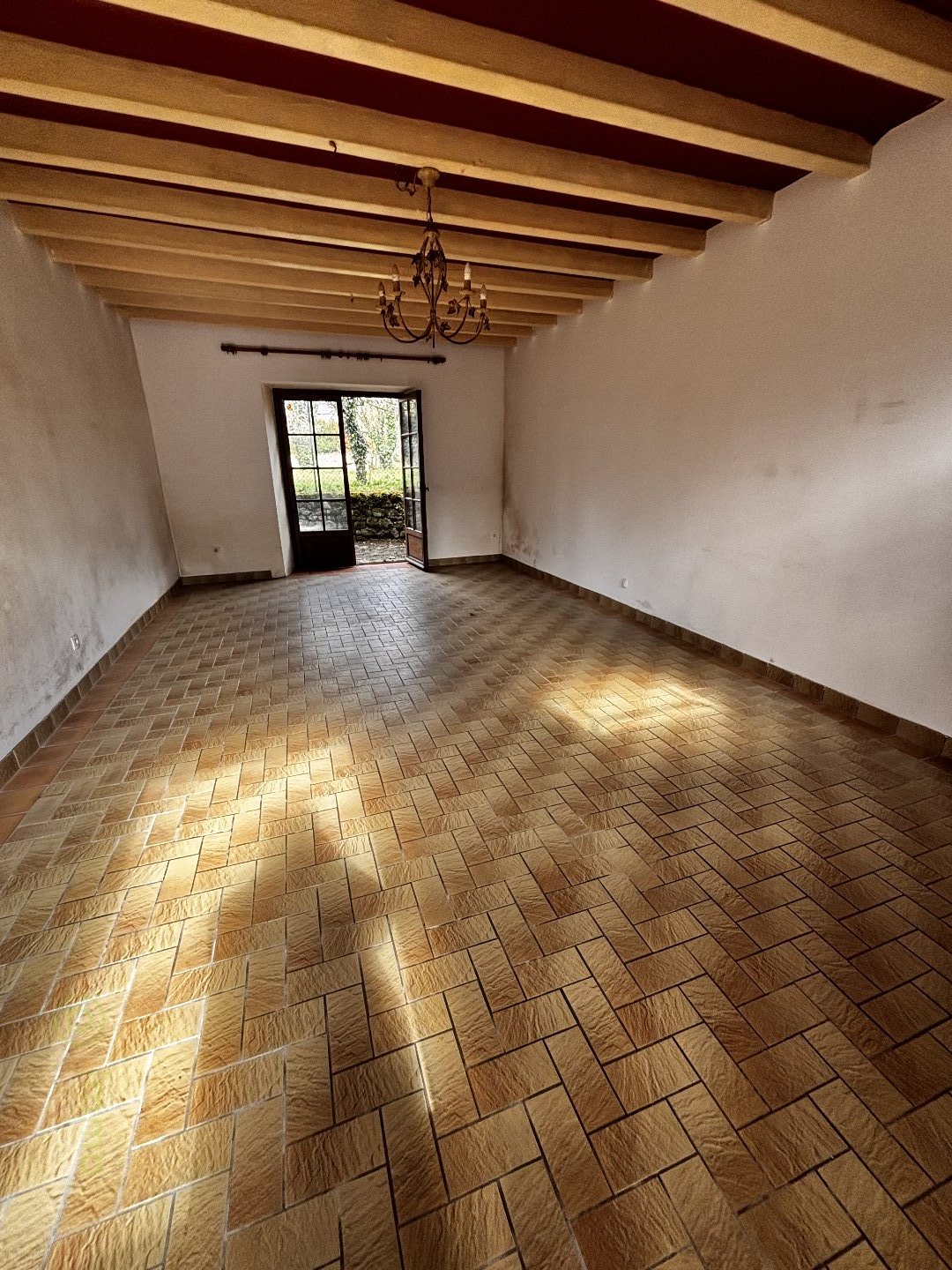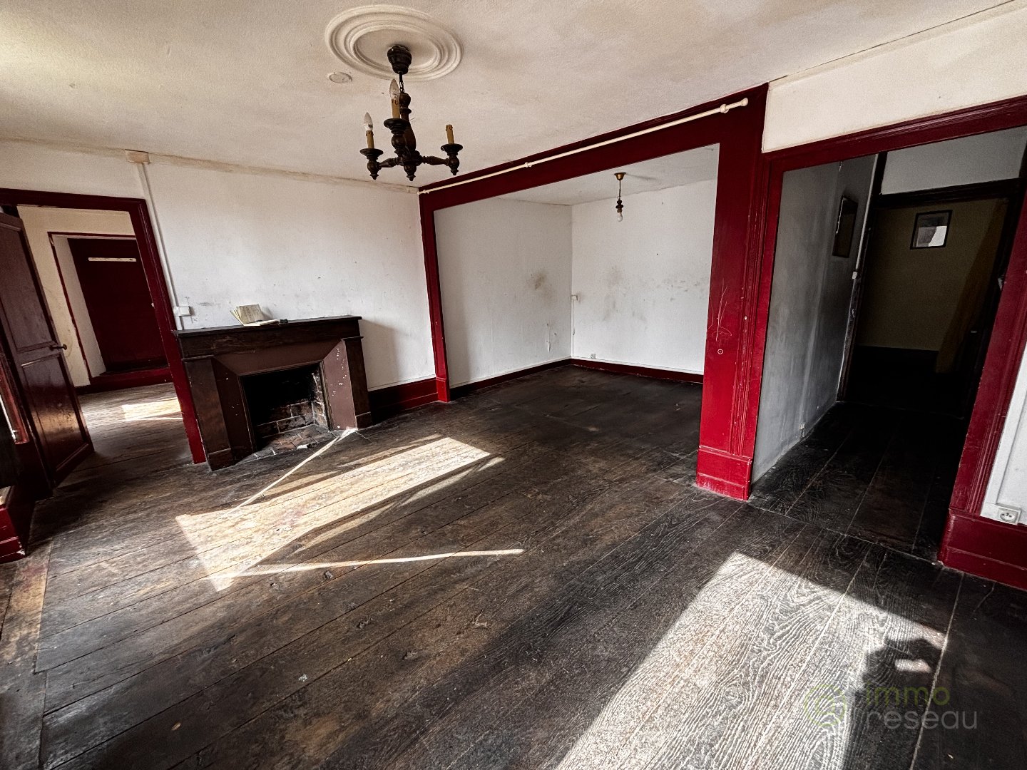 – Un salon avec cheminée d’environ 21 m², pouvant être aménagée en chambre,
