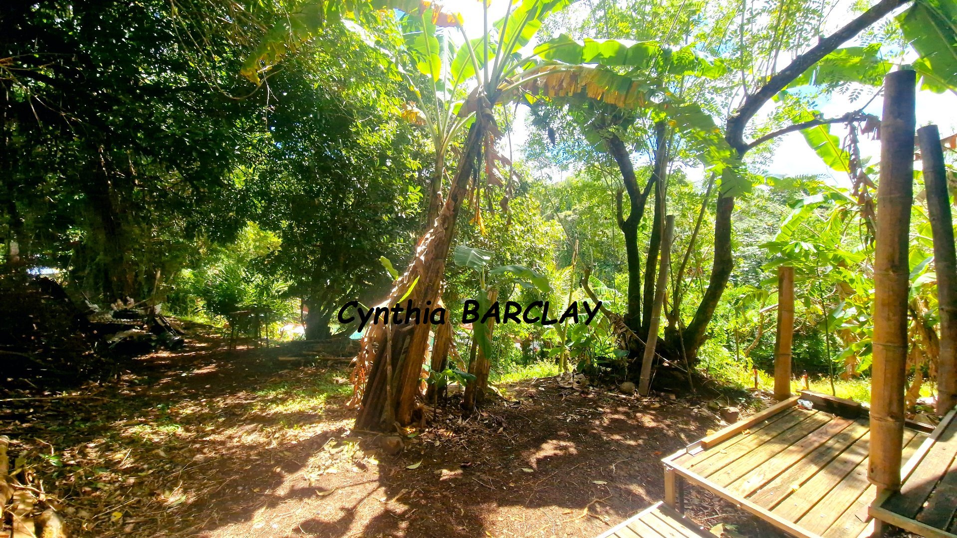 Grâce à ce terrain très verdoyant et très fertile, vous bénéficierez de nombreux arbres fruitiers qui portent en abondance: bananiers, cocotiers, papayer, jaquier, cacaoyer, goyavier, avocatier, corossolier, manguier, prunier, cerisier, citronnier, pommier (pomme d’eau), pied de pitaya, des légumes comme du manioc et des plantes médicinales comme l’atoumo ou encore le moringa. Un vrai marché à domicile!