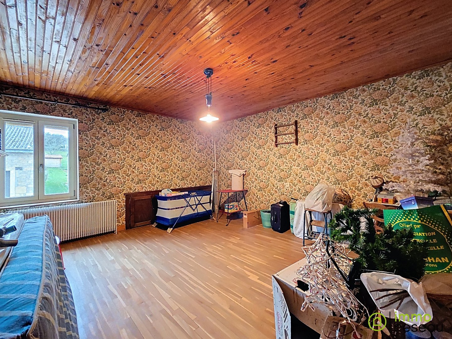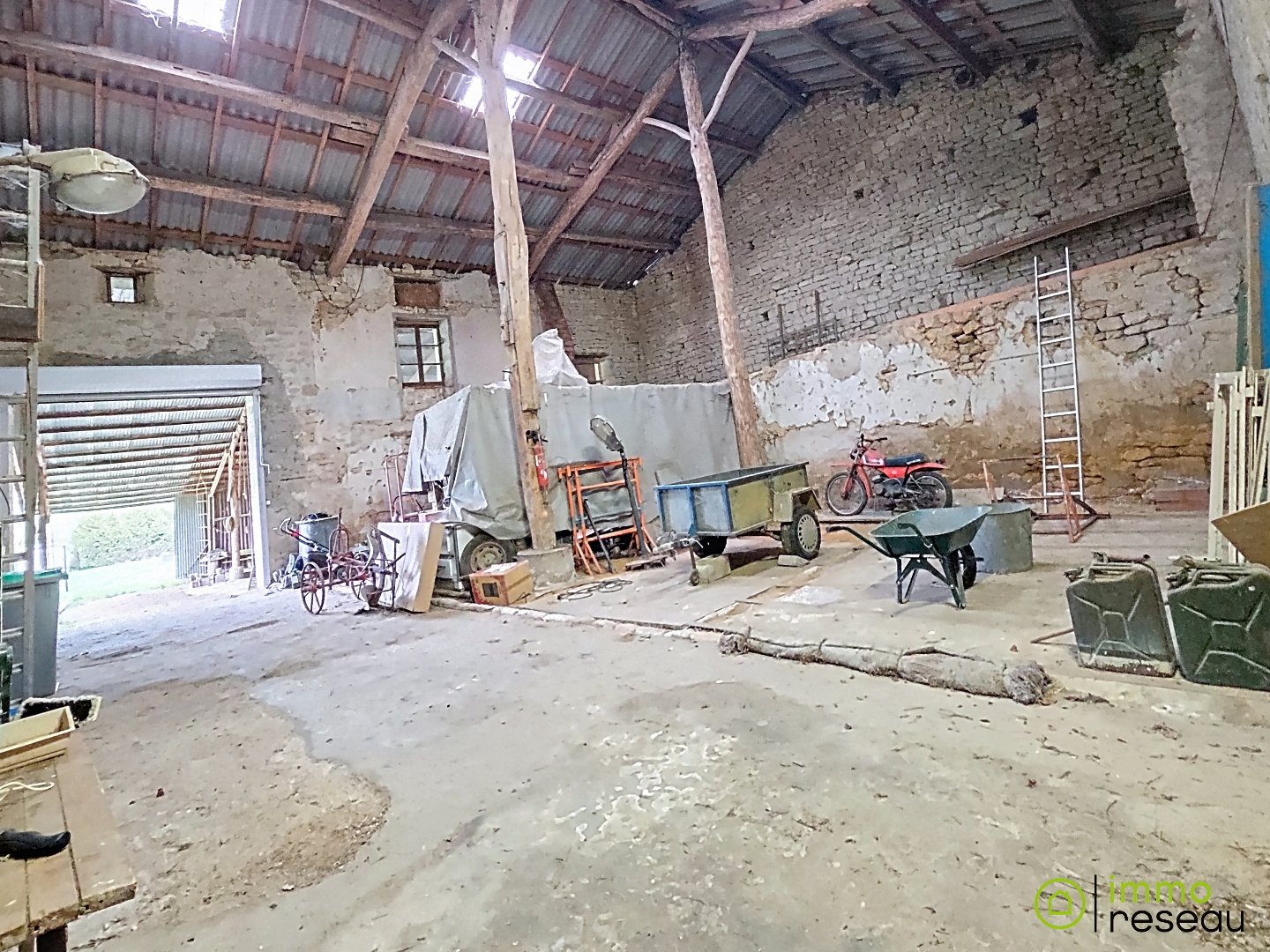 À cela s’ajoutent une grande grange, deux garages et un environnement rural paisible, idéal pour ceux recherchant l’espace et la tranquillité.