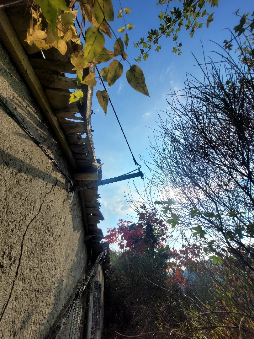 La maison est raccordée au réseau électrique, avec la présence d’un ancien compteur sur place.