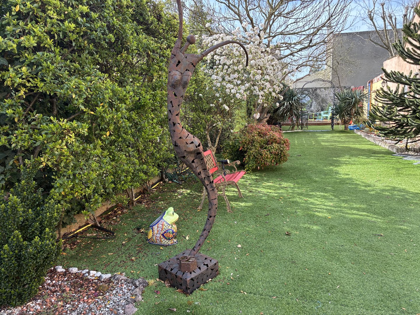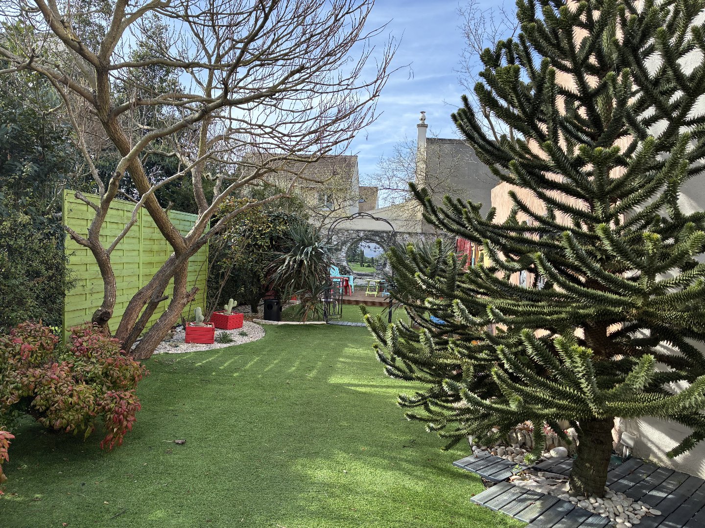 Profitez d’un magnifique jardin de 425 m2 où la propriétaire a laissé libre cours à son imagination et aux souvenirs de ses nombreux voyages !