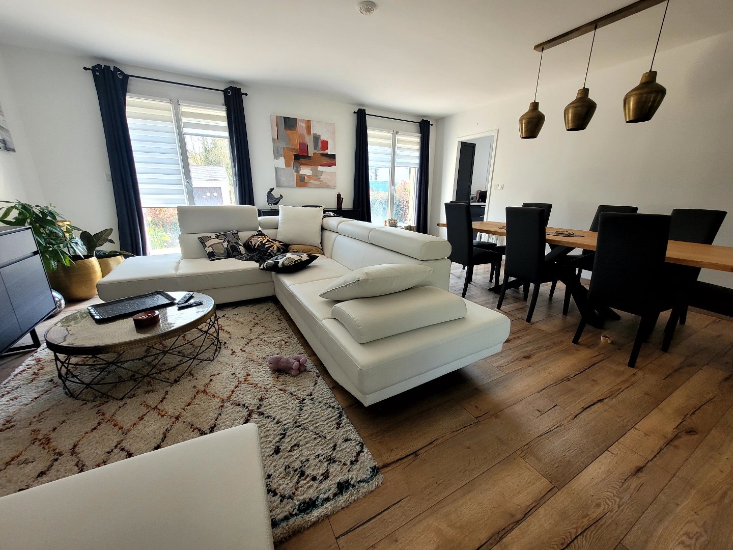 Proche commerce, écoles, au calme dans zone pavillonnaire, maison F6 de plain pied entièrement renovée. Vaste salon salle à manger lumineux, cuisine séparée aménagée et équipée, 3/4 chambres, salle d’eau, wc séparé, garage. Le tout sur un terrain de 539m2
