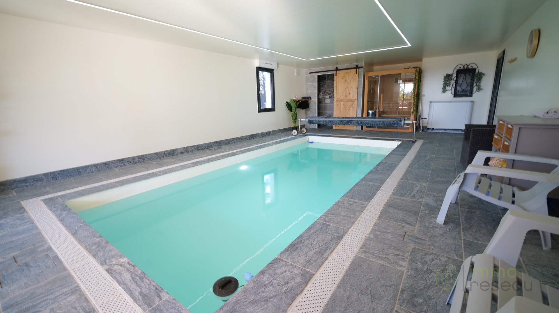 Pensée comme un véritable sanctuaire de bien-être, l’espace intérieur comprend une piscine chauffée avec nage à contre courant et un sauna.
