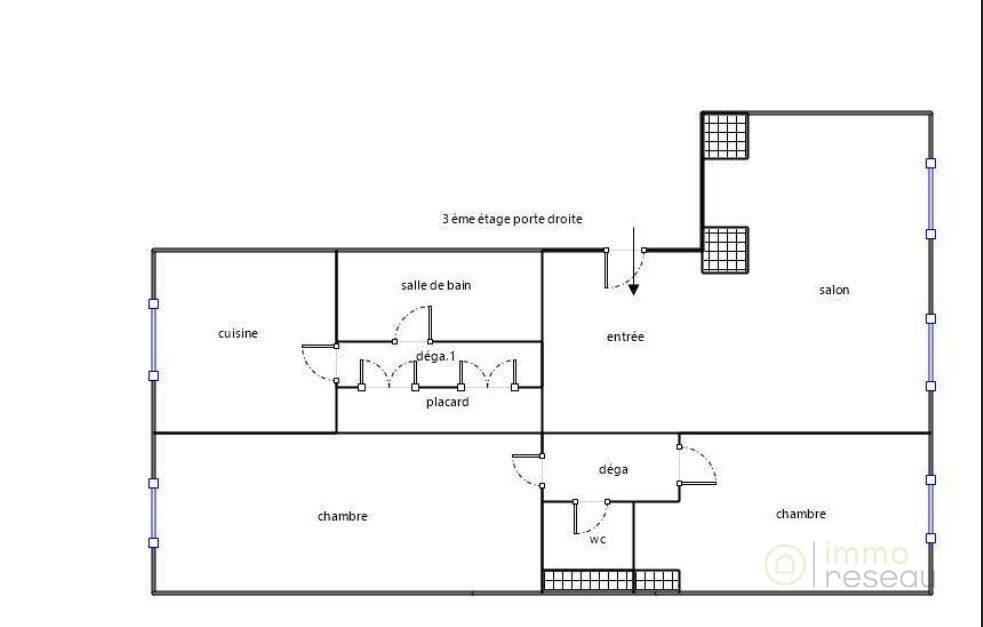 L’appartement se compose : d’une entrée, d’un séjour lumineux, d’une cuisine, de deux chambres, d’une salle de bains et de WC séparés.