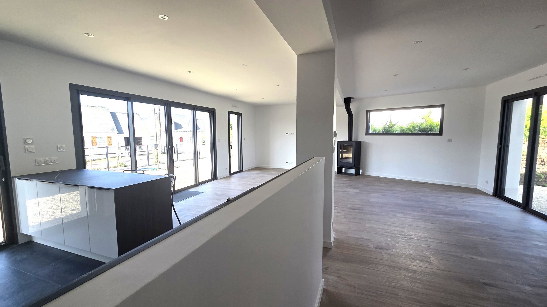 proposant 133 m² habitables et 145 m² utiles, avec prestations de qualité, vous offre: une entrée ouverte sur la pièce de vie lumineuse de 60 m² et son poêle à bois, avec cuisine aménagée et équipée, cellier-buanderie, chambre de 19 m² et sa vue agréable, salle d’eau, wc indépendants au rez-de-chaussée. Palier, 3 chambres dont une avec salle d’eau privative, autre salle d’eau, wc indépendants à l’étage. Garage. Le tout sur une parcelle de 800 m².