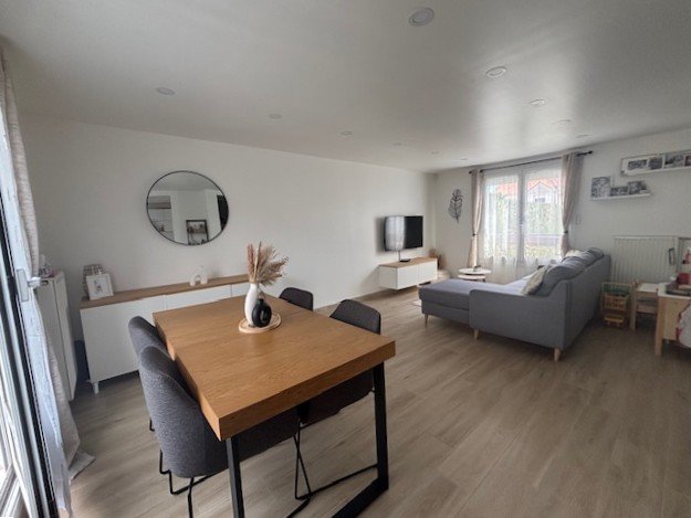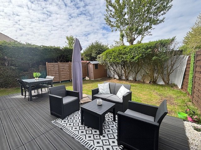 Ce bel espace de vie vous permettra de profiter directement d’une GRANDE TERRASSE et du jardin pour profiter de moments conviviaux.