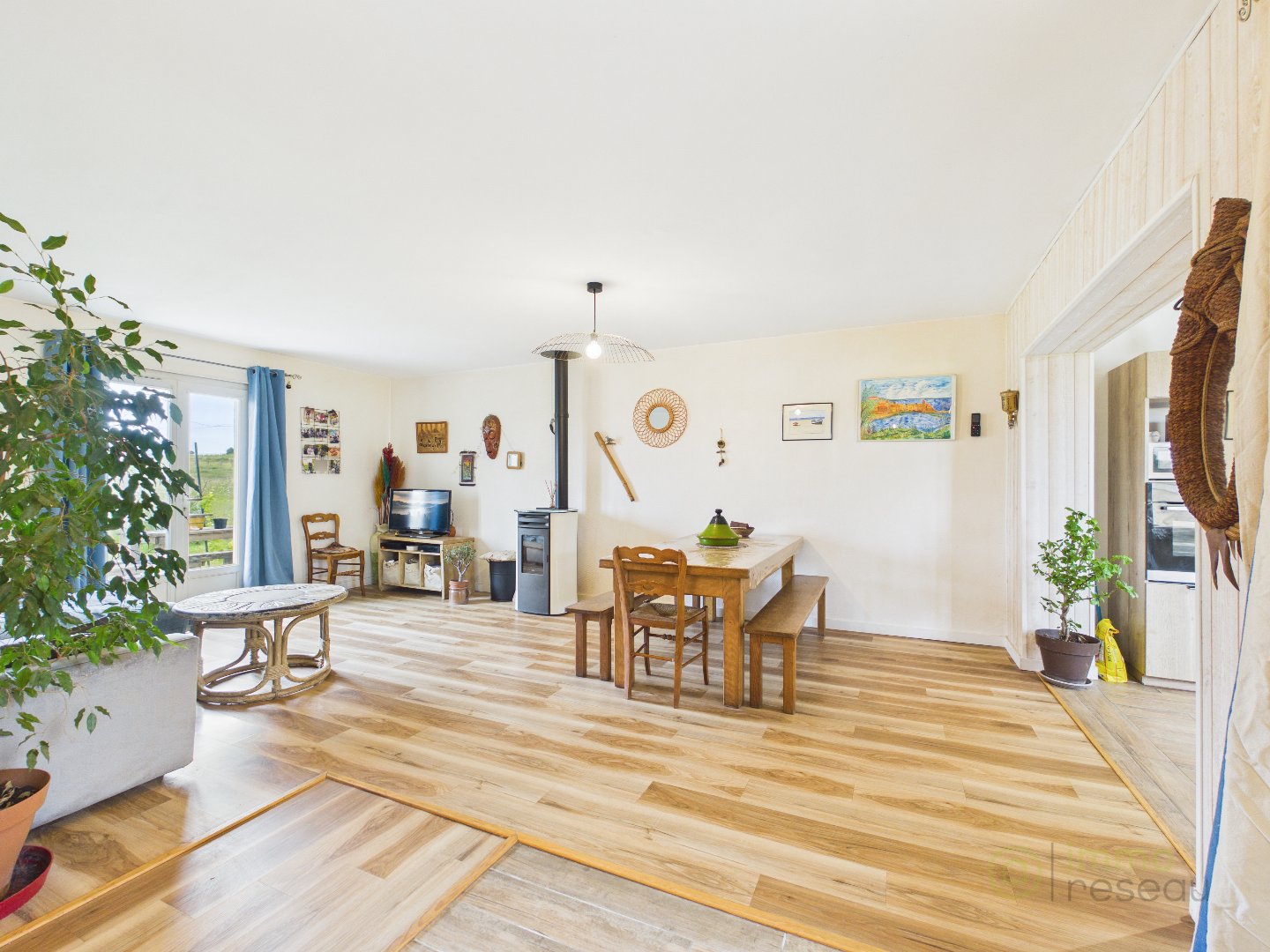 Laissez-vous séduire par cette ravissante maison de plain-pied, alliant confort moderne et cadre de vie privilégié. Développant environ 80 m² habitables, elle propose une spacieuse pièce de vie baignée de lumière, sublimée par une cuisine ouverte aux lignes contemporaines, idéale pour recevoir en toute convivialité.